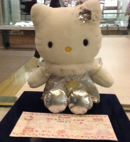 上場記念に作られたのか、キティちゃんのぬいぐるみつき。