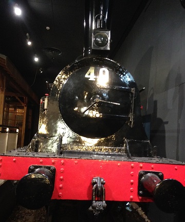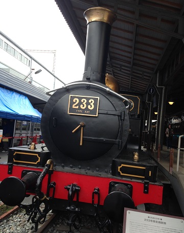 上の駅舎で改札口を通りホームに出ると停車している機関車です。