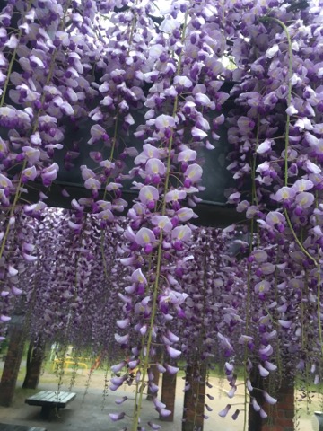 後日4/26水曜日、たまたま早く仕事が終わったので行ってみたら、今度はちゃんと咲いていた藤棚です。