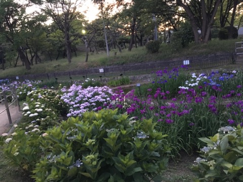 仕事が早く終わった訳でもない6/2金曜日の夕方、そういえばそろそろ菖蒲が咲く頃かと思って見に行きました。