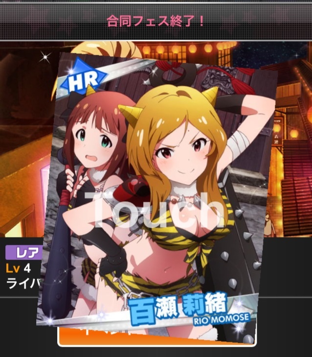 最上級レアフェス「鬼の女王 天空橋朋花」の開催者・参加者報酬で「頼れる鬼姉御 百瀬莉緒」のレアドロップがある、とはイベントの説明にもちゃんと書いてあったのですが……。