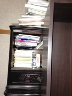 家族のものでも自分のものでもないのですが移動も廃棄もできないので、上のガラス棚とその上だけ中身を片付けて本棚代わりにしていたものです。