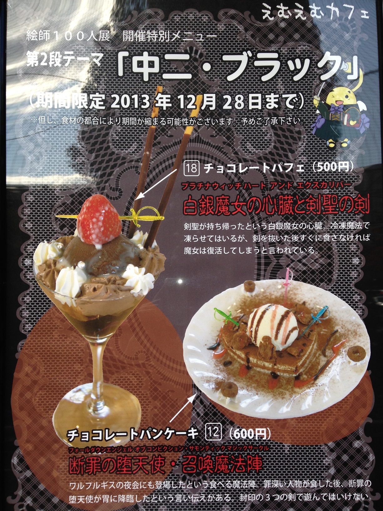 喫茶店メニューは絵師100人展に関連したもので、中二・ブラックがテーマ、だそうですw