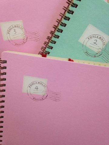 色展開が茶色、青緑、ピンクの三色しかなく、三冊目と四冊目が同じ色になってしまったので、とりあえず表面に番号を振ってみました。