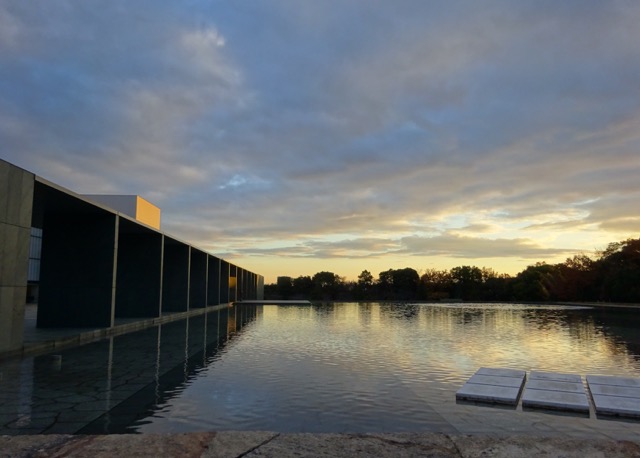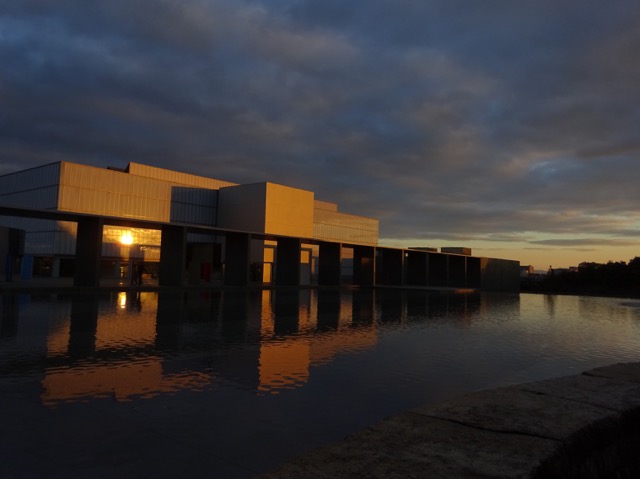 又日亭から戻る時、噴水のある池を手前に、後ろの美術館が夕陽に照らされてすごく綺麗でした。