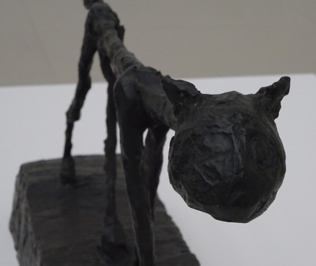 猫は同じアパートに住む弟が飼っていて、猫が毎朝ジャコメッティに顔を近づけて起こしに来るから、猫の顔しか作れないという謎の解説があり、顔以外は棒のような骨組みだけでした。