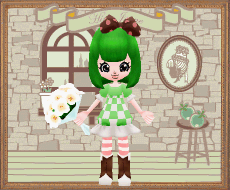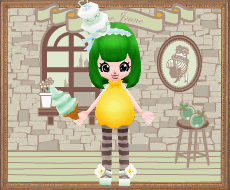 頭はウェディングケーキカチューシャ、手で持っているのはジュレ属性のソフトクリームです。