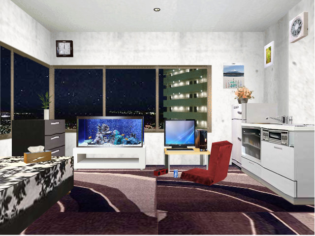 追加購入の前に一旦前居のアパートを再現したのですが、うっかり座椅子とラジカセを設置し忘れていたのは内緒ですw