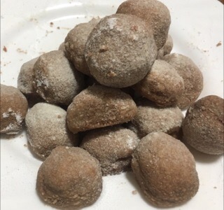 粉糖と同時に製菓用の粒チョコレートも買ったのですが、普通に丸めているだけで崩れてくるのに、中に入れるなんて無理!と諦めました……。