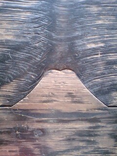 最初兄が見つけた時はハートに見えたのですが、年代を考えると葉っぱですよねぇ。